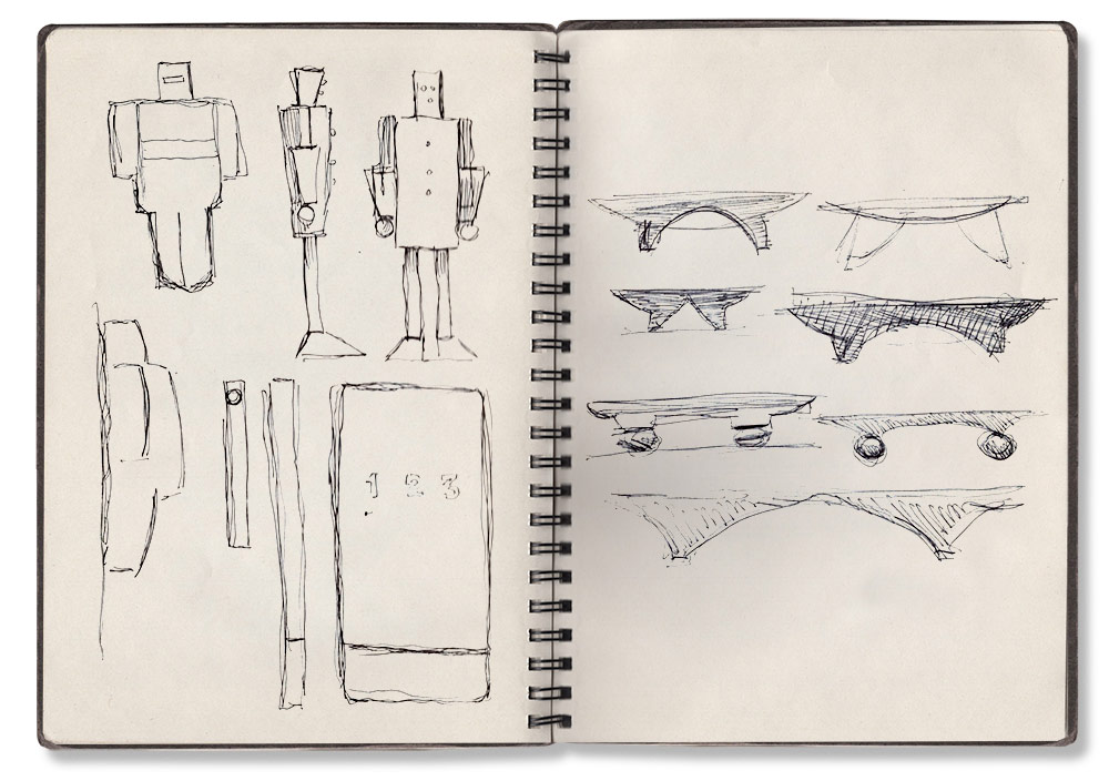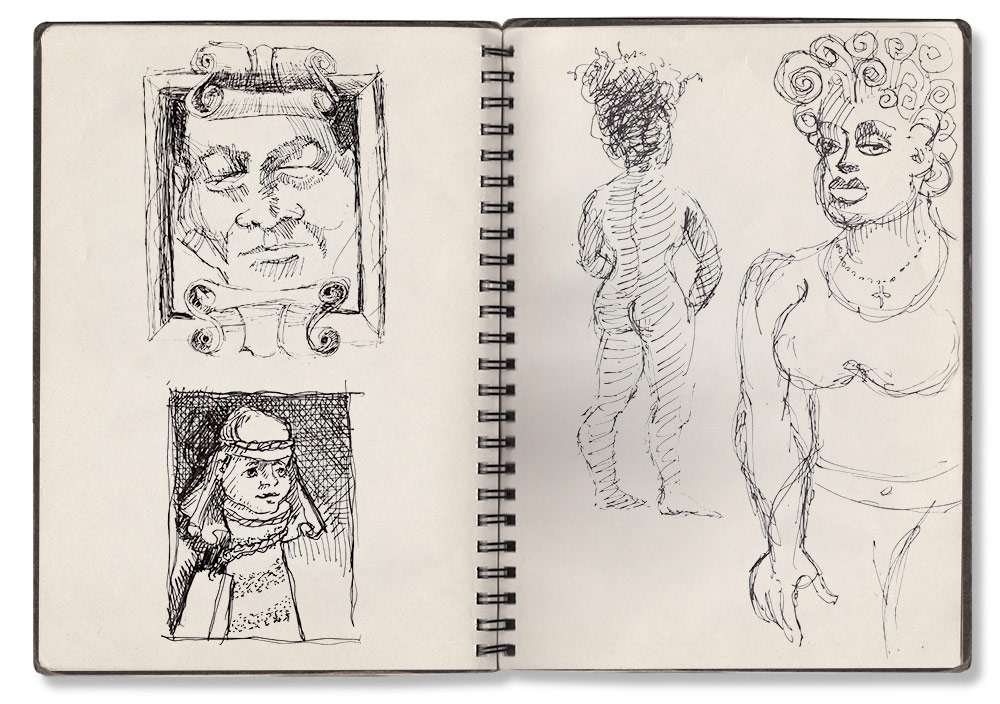 Prior to keeping journals, I would sketch concepts on any available surface. I realized, though, that valuable concepts, once drafted on paper scraps, Post-It notes, and within random notebooks, were being discarded and lost. At the same time I also found myself greatly attracted to the art journals of Freda Khalo, Pablo Picasso, and Vincent Van Gogh.