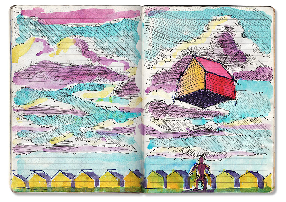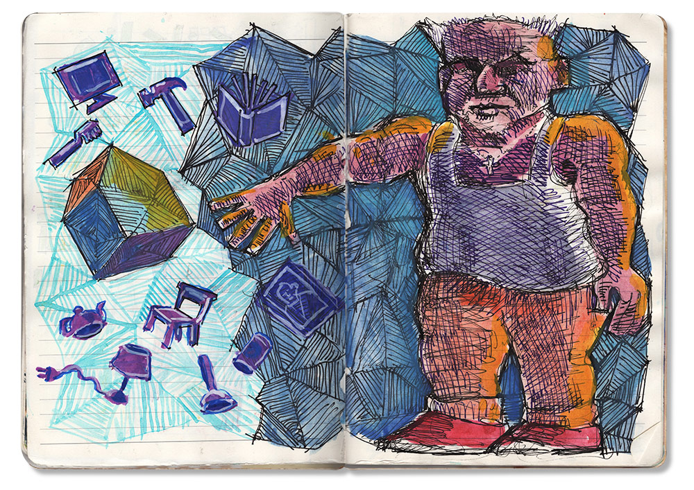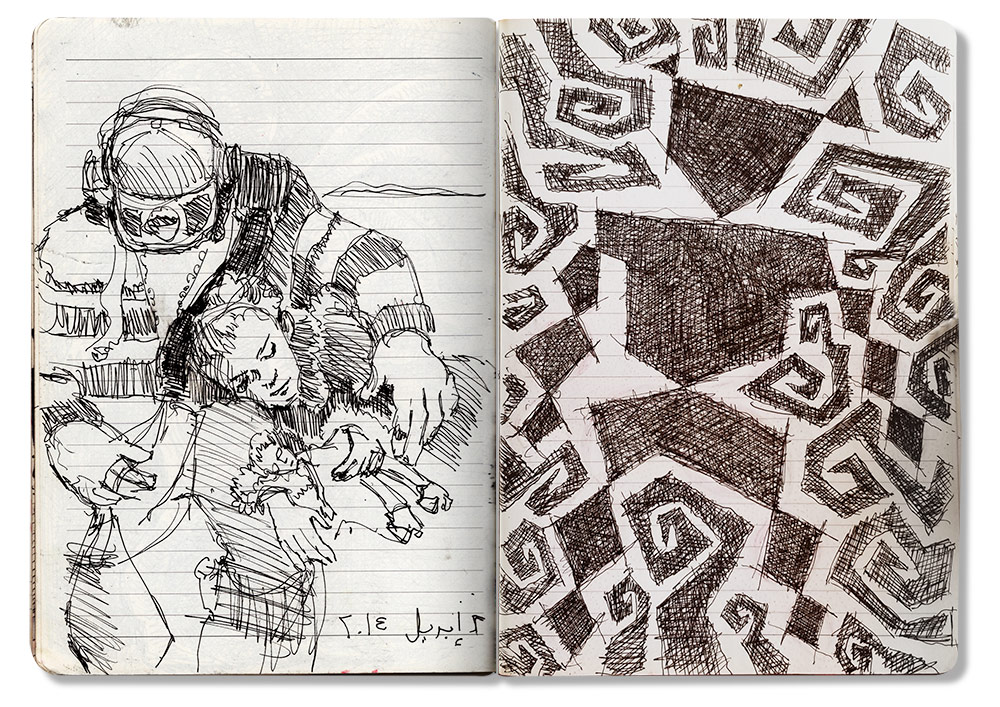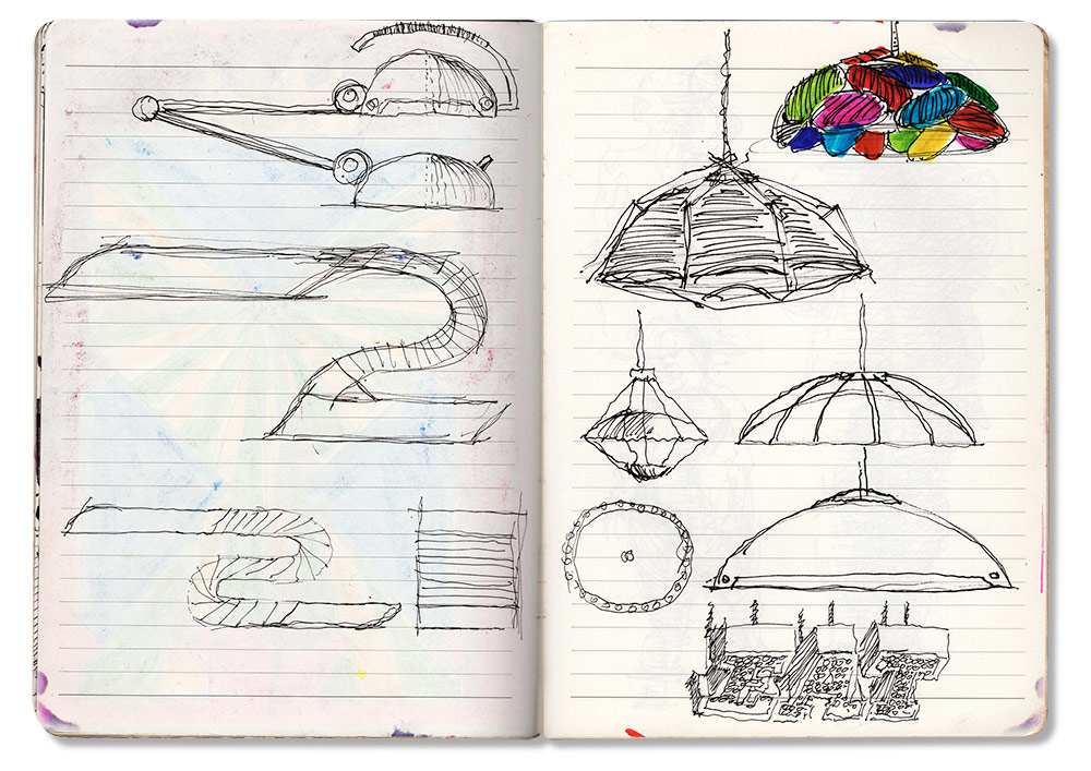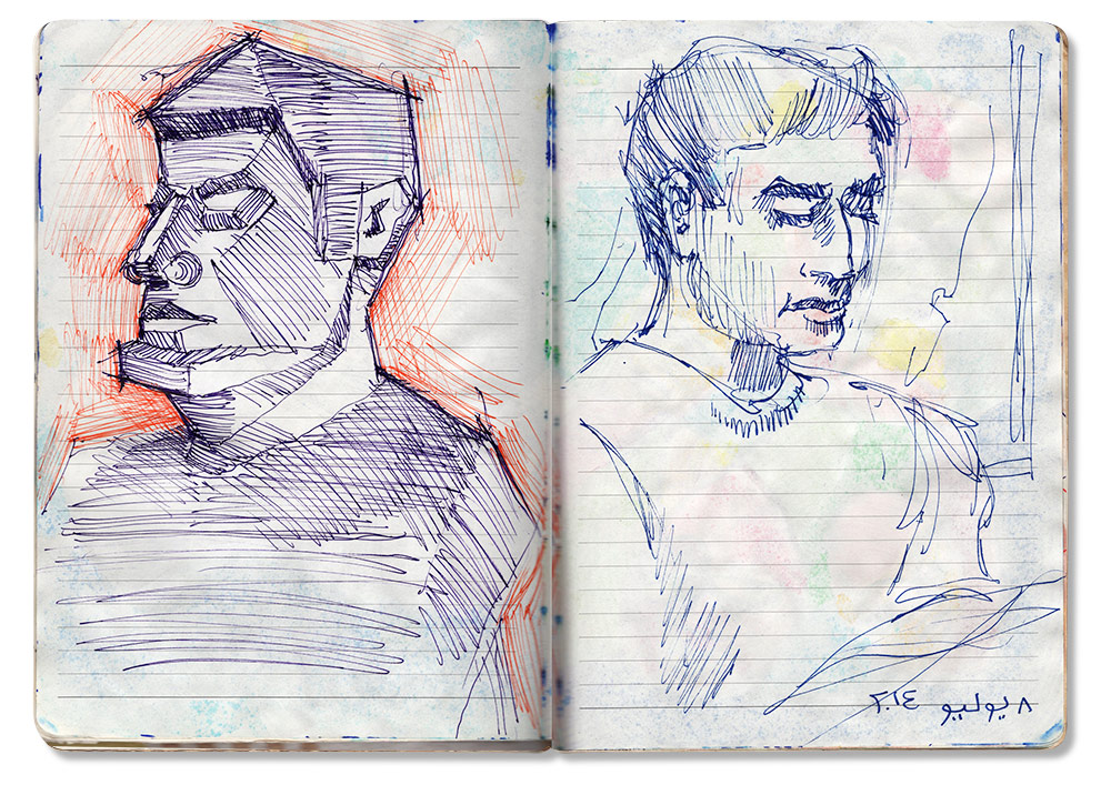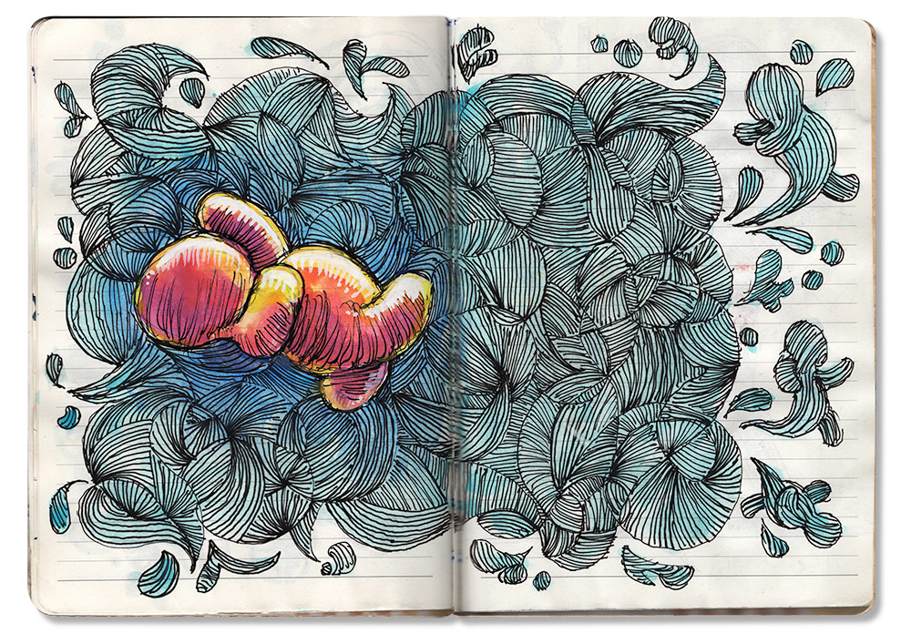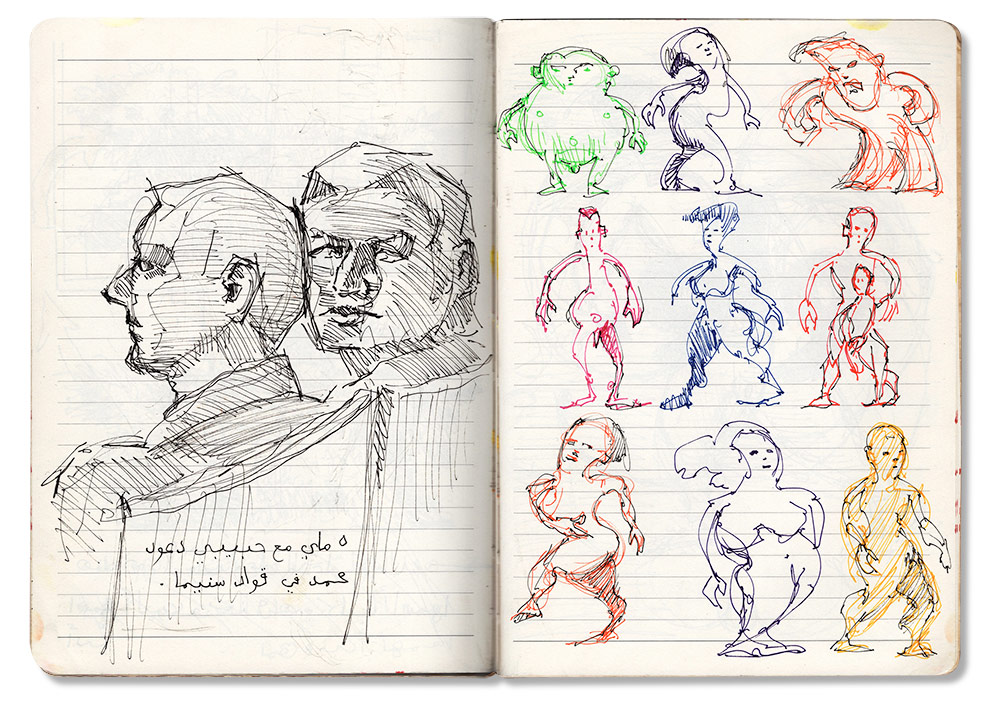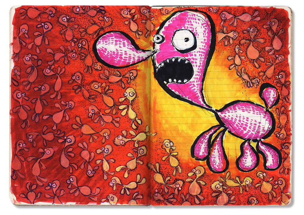 This journal was a gift, and it has many pages. I decided to use them to experiment with thumbnail sketches of the human body scattered between corporate ID and painting concepts. This journal marks the main transition into color mixed media.
