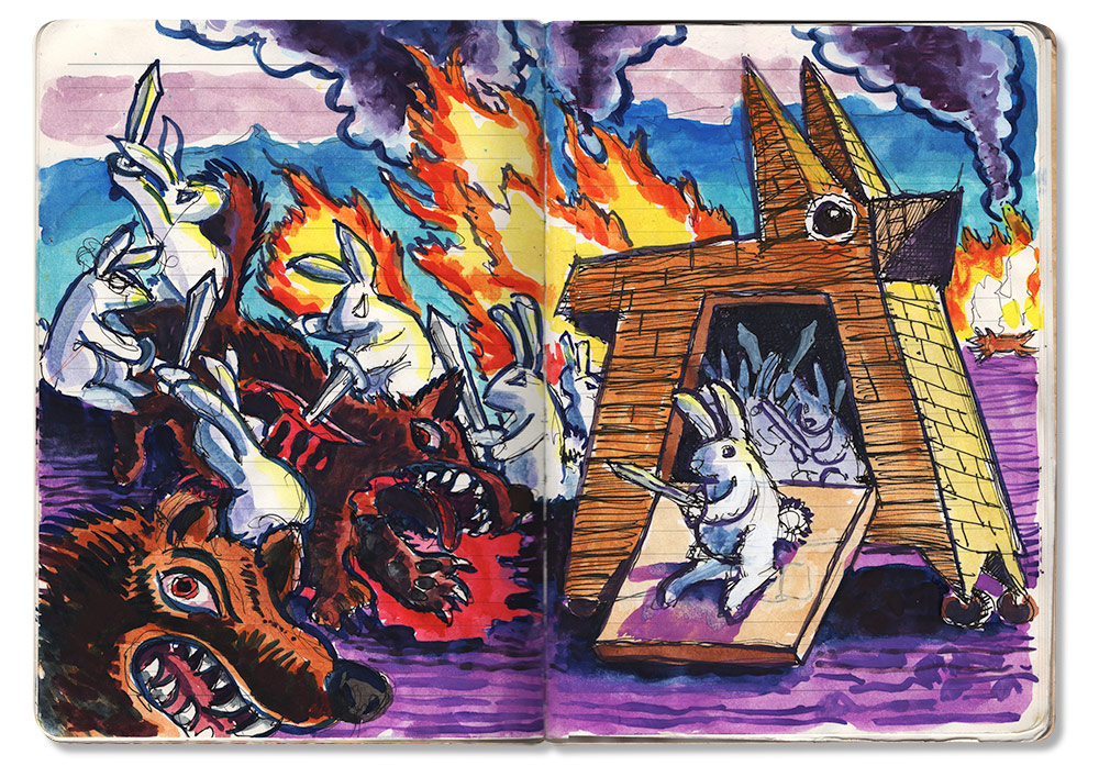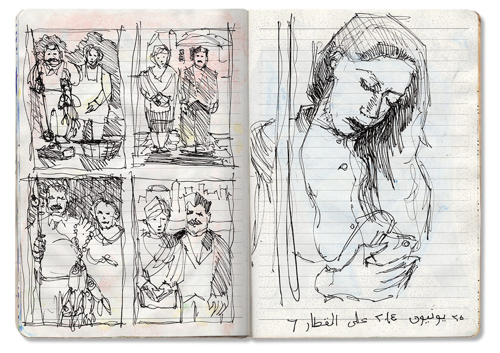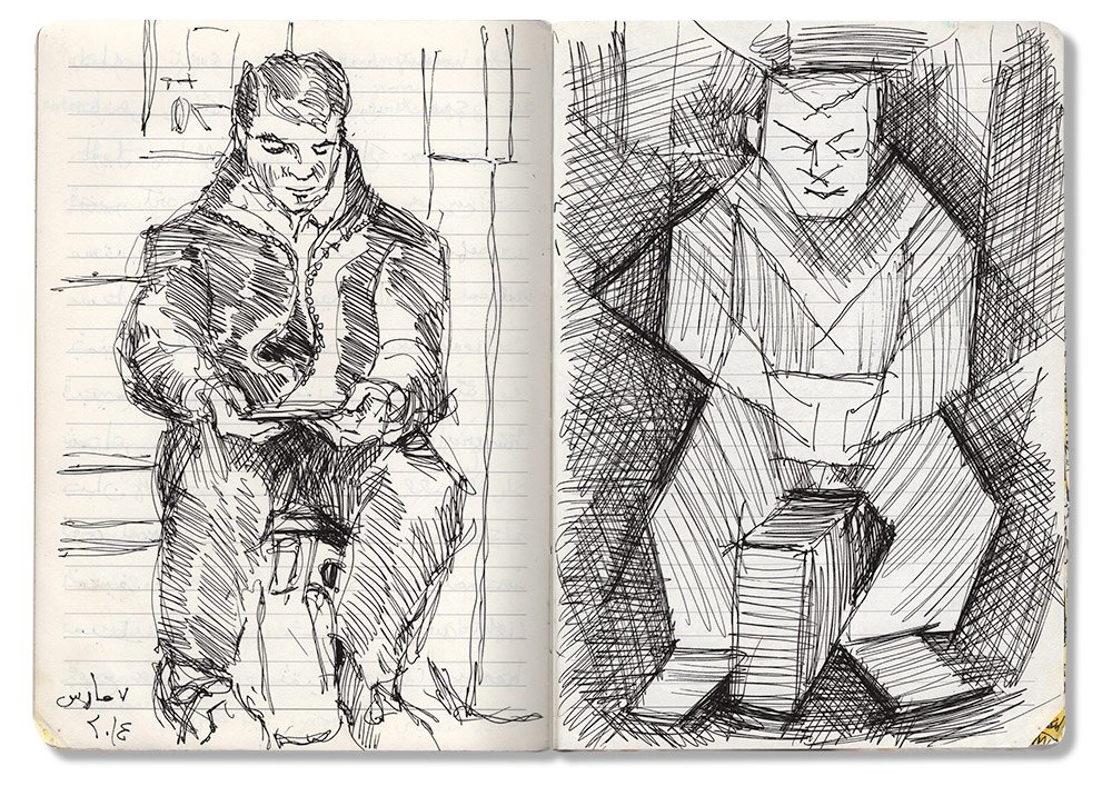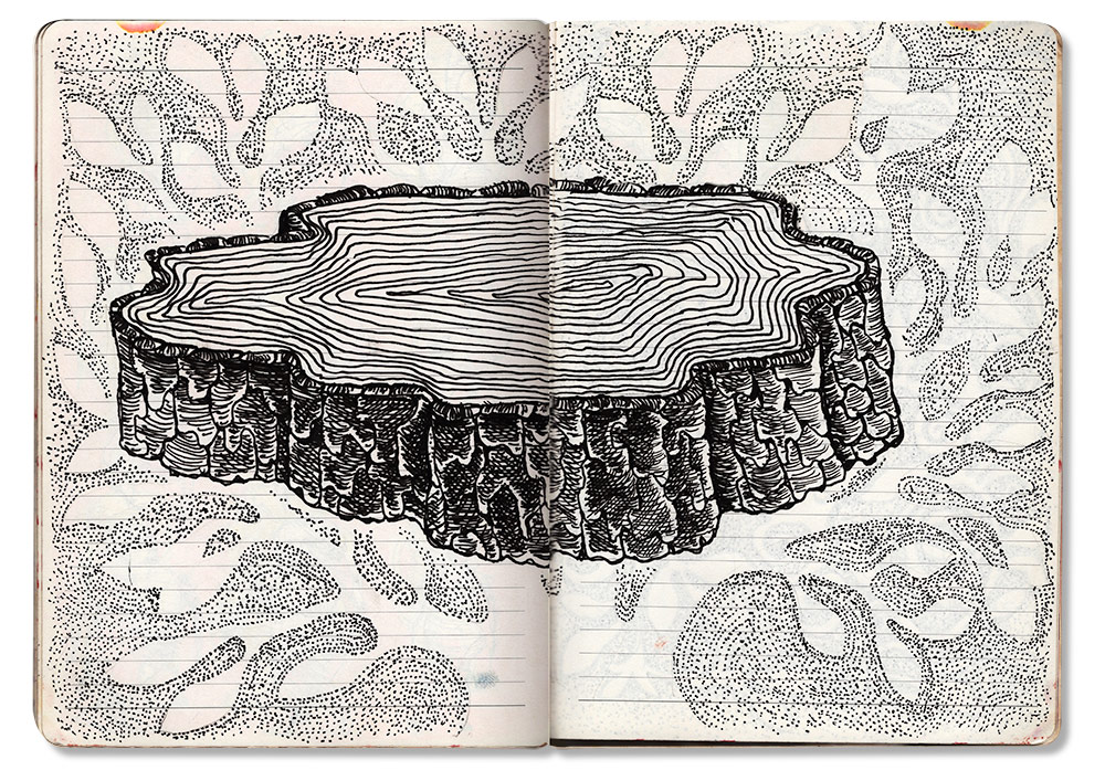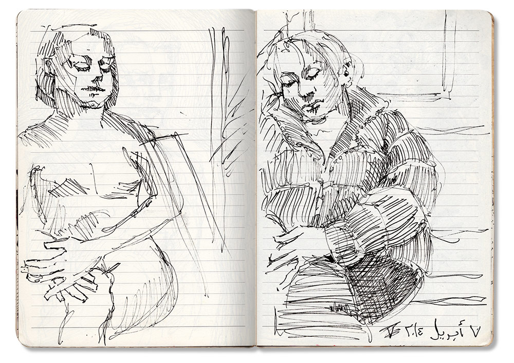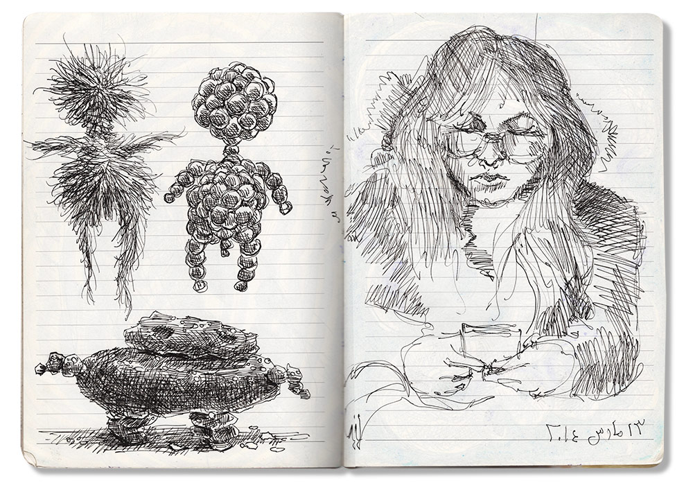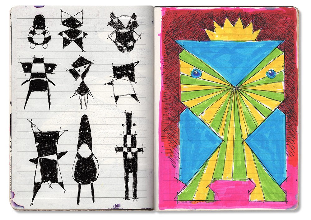 This journal was a gift, and it has many pages. I decided to use them to experiment with thumbnail sketches of the human body scattered between corporate ID and painting concepts. This journal marks the main transition into color mixed media.