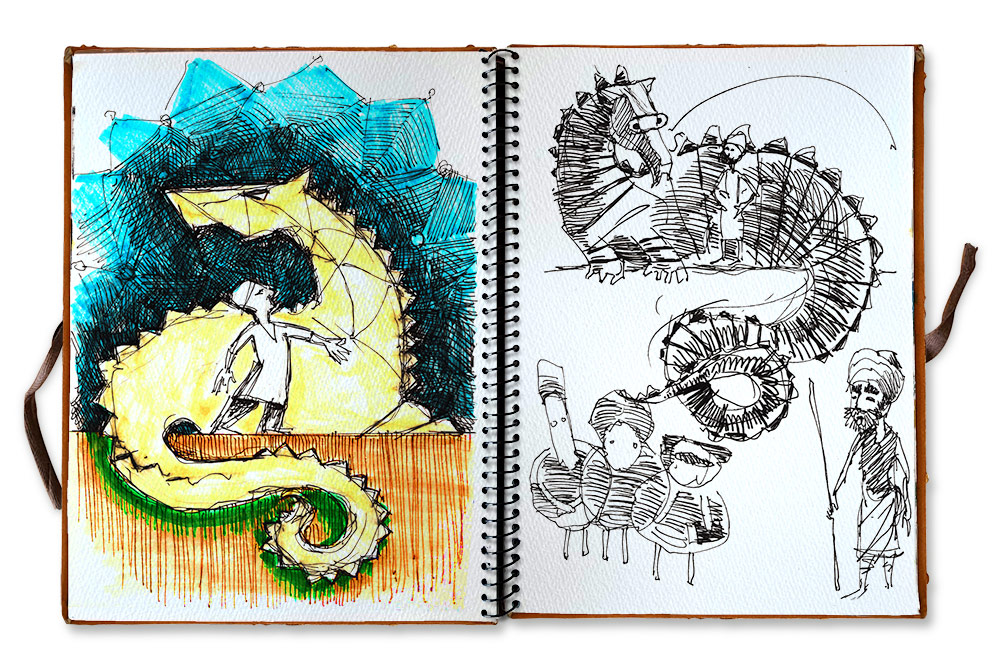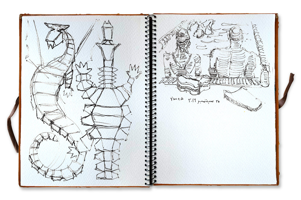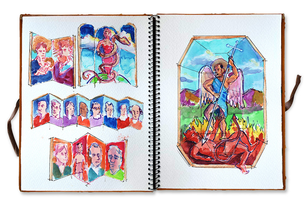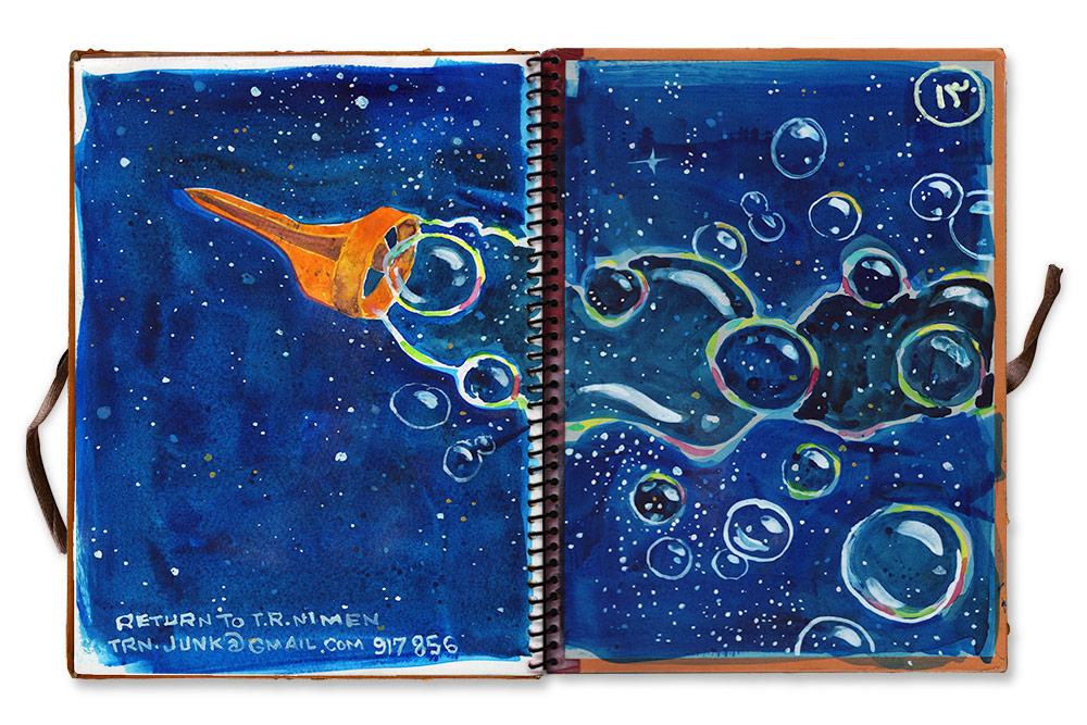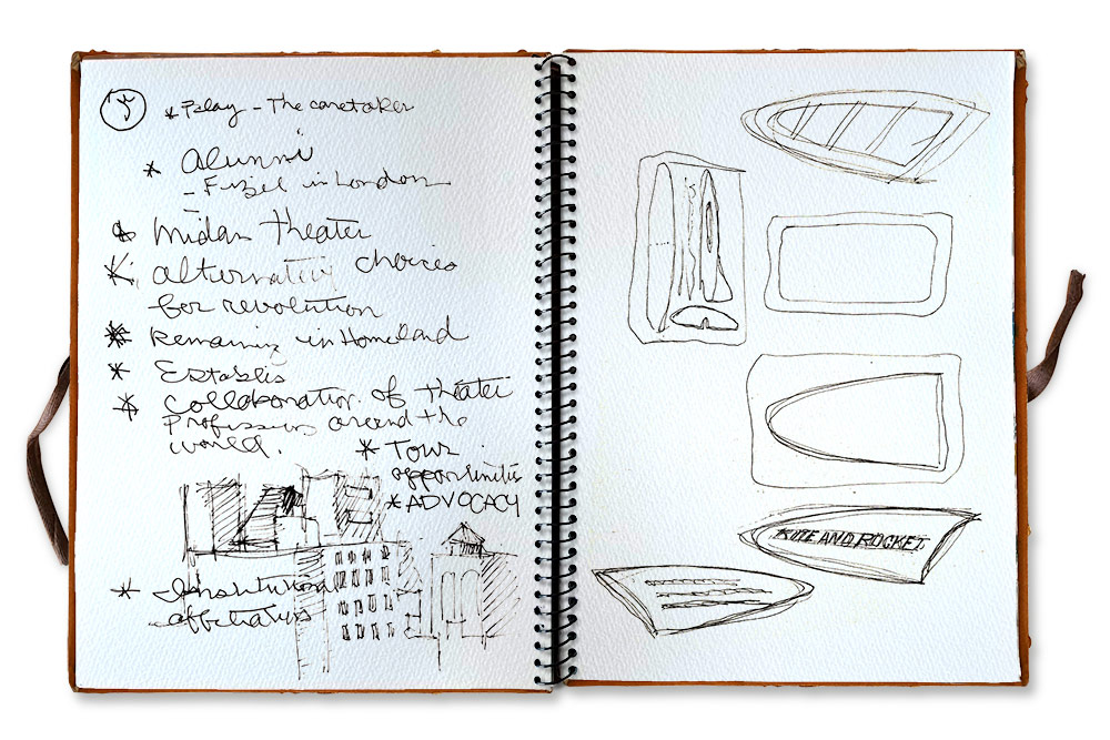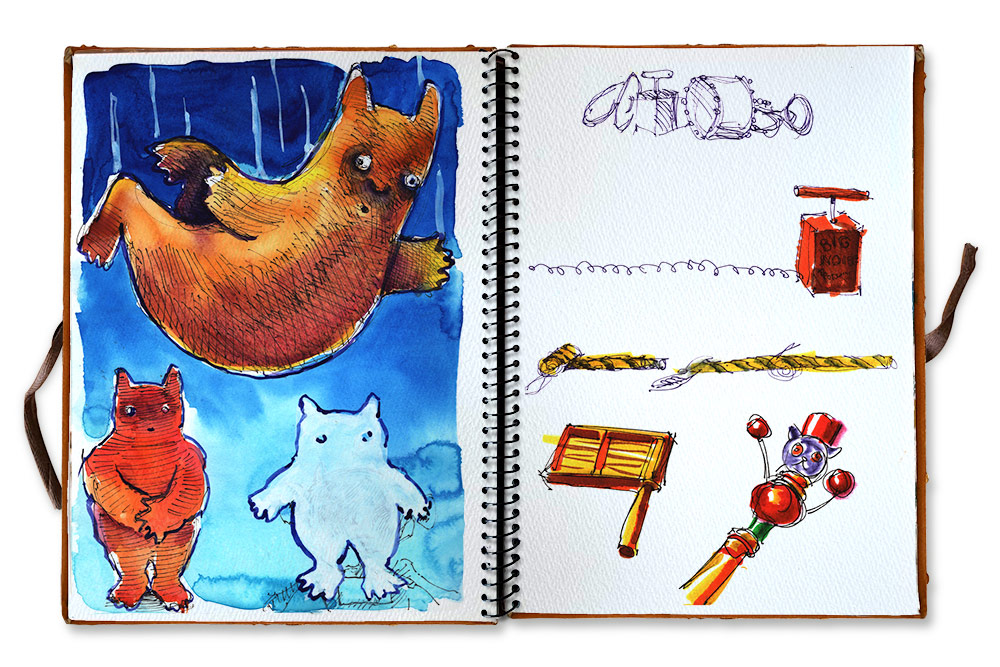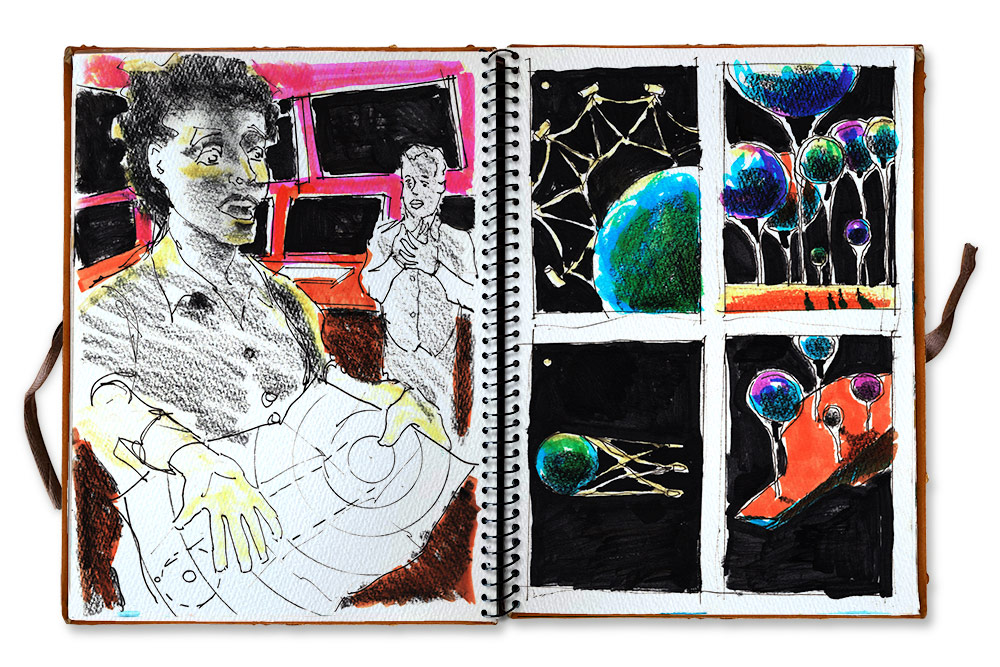 Among the design concepts you’ll note several puppetry performance sketches. These will show up often in future journals too. In my younger years I had some recognition for puppetry performance in the Midwest, and in fact, I moved to New York City specifically to work for Jim Henson. His organization turned me down twice, and I was heartbroken.